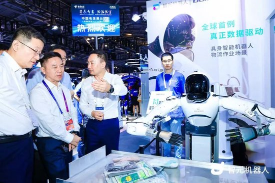 智元展台俨然一个 “机器人职场”,每个机器人都有明确 “岗位职责”,在互动中尽显专业能力。