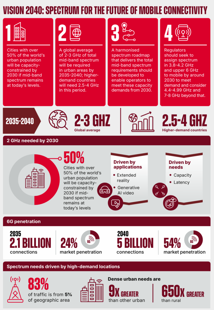 IT之家11月23日消息,全球移动通信系统协会GSMA于11月20日发布了《2040年愿景:面向未来移动连接的频谱》(Vision2040:SpectrumfortheFutureofMobileConnectivity)研究报告。