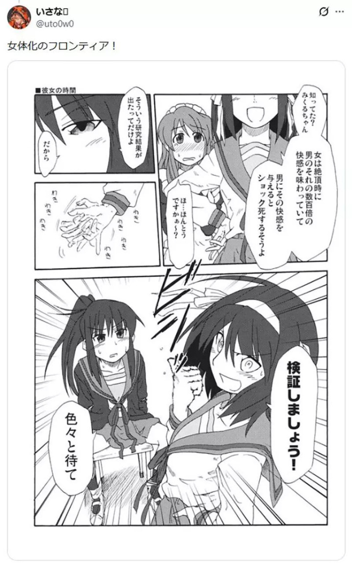 还有人认真讨论——“虚子到底是因为凉宫春日的力量被性转了,还是原本就存在于某个平行世界?”